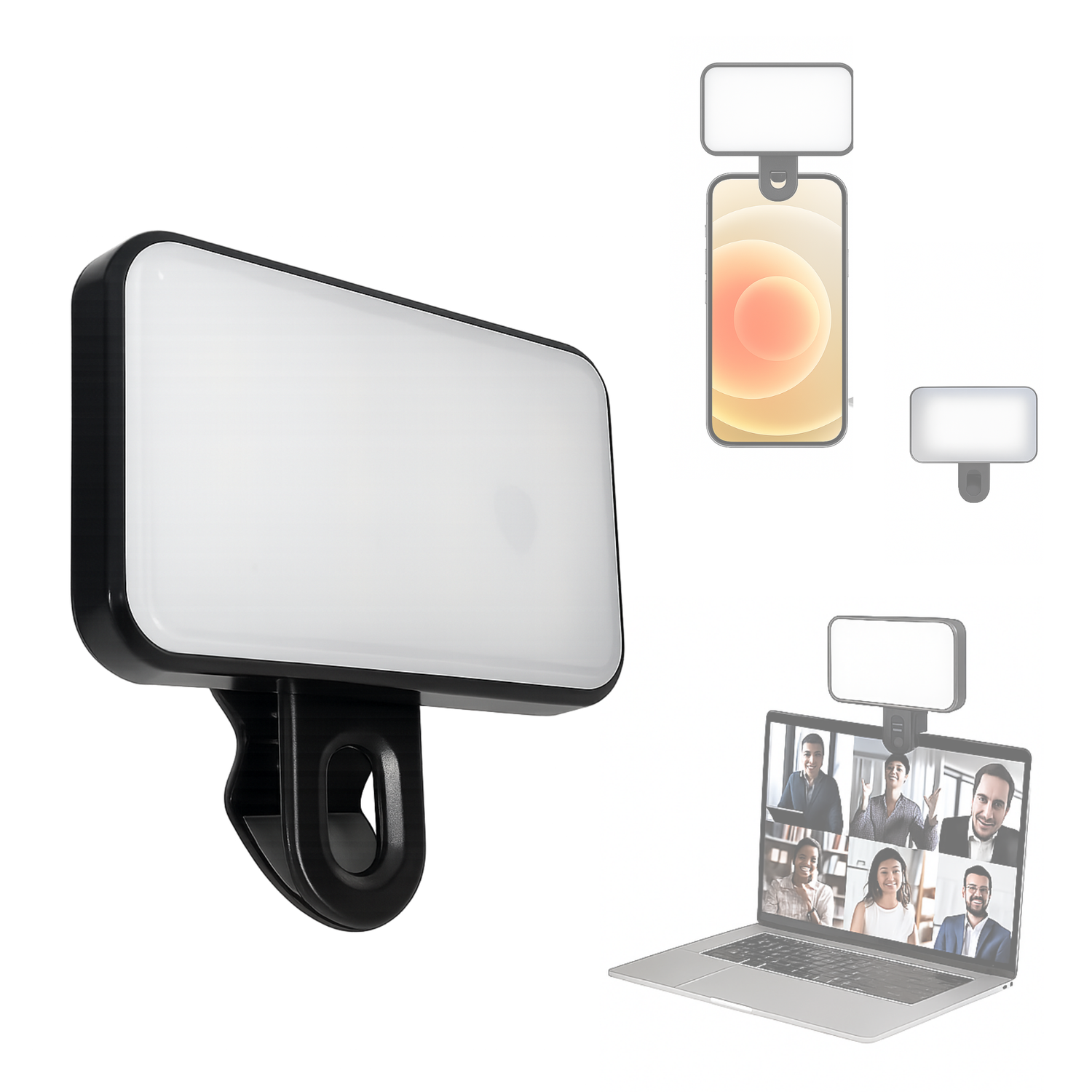Luz LED tricolor que se adapta a tu móvil, tablet o portátil. Tres tonos de iluminación para que siempre te veas increíble en videollamadas y fotos.