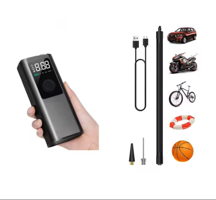 El Compresor es el aliado perfecto para mantener tus neumáticos, pelotas o flotadores siempre a punto. Su diseño portátil, elegante y sin cables te permite inflar en segundos desde tu coche, moto, bici o incluso una pelota de baloncesto.